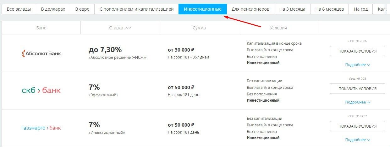 На Sravni.ru можно сразу выбрать инвестиционные вклады на особых условиях и сравнить условия в разных банках