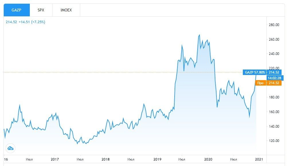 Посмотрите, как менялась цена акций GAZP за последние 5 лет